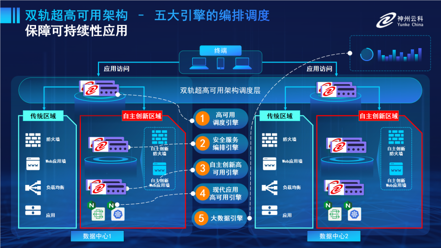 为满足数据中心双轨建设信创区和非信创区跨域协同,酷游九州通过5大引擎实现双区无缝切换,跨域协同。